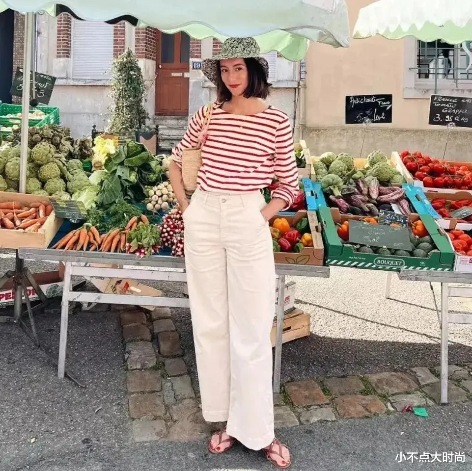 黑白的条纹衫很经典,适合小个子姐妹通勤穿搭,搭配一条白色的高腰阔腿西裤,显高显瘦,干净利落,气质不俗。▼