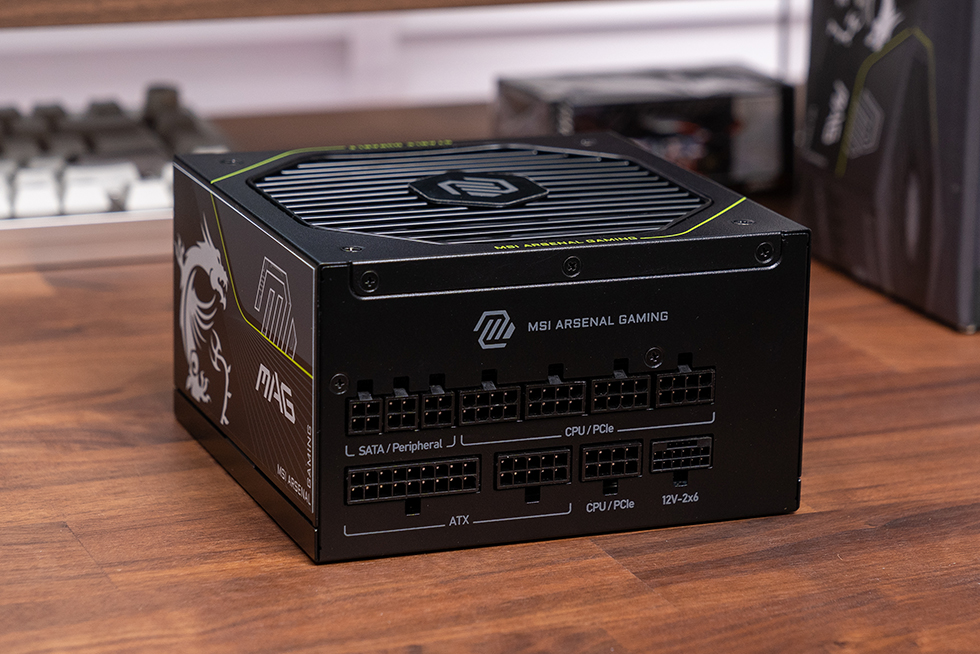 微星MAG A1200PLS PCIE5电源采用标准ATX规格,尺寸适配绝大多数中塔、全塔机箱,机身主体为黑色,表面采用类金属质感涂层,搭配侧面的MAG系列标志性Logo,整体风格硬派简约,符合电竞硬件的视觉调性。电源外壳边缘做了圆角处理,避免装机时划伤手,细节处体现出大厂的做工水准。