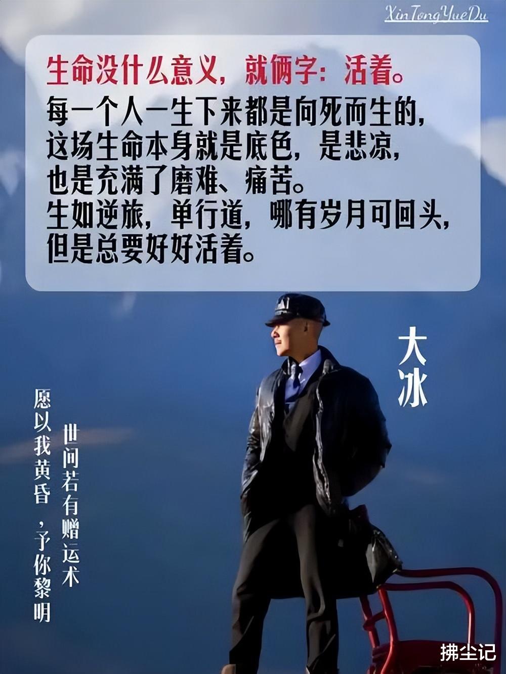 大冰:跟我说一句话,无所谓,都得死,不要活亏了。我得吃好点,喝好点,这个世界上所有一切,我都配得上。