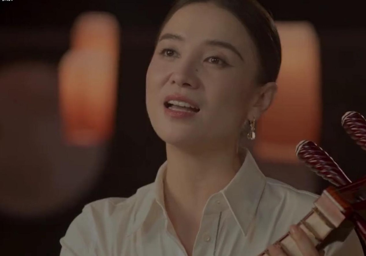 乘一叶扁舟出场,美的像一幅画,手持古典乐器,坐在摇椅上抬头望月,仿佛穿越时空与嫦娥对话。
