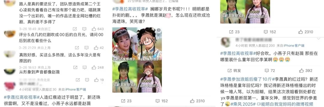 他们开始质疑李晟的票数是否注水,质疑她的热搜是否花了大钱。甚至去翻她过去演的剧,指责她演的基本都是烂片,没有一部拿得出手。就连那部收视率超高的《花非花雾非雾》,剧情也雷得不像话。