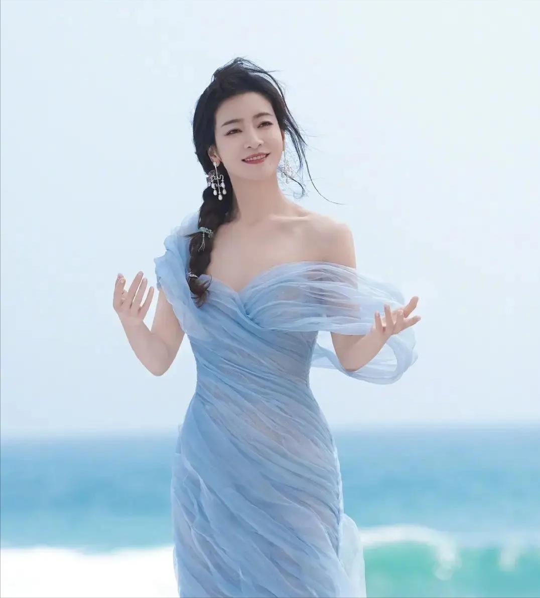 在《浪姐6》的舞台上,李晟身着一袭蓝色纱裙,迎着海风缓缓走来。纱裙随风飘动,在蓝天和大海的映衬下,美得温润淡雅。