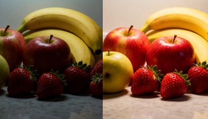上面的水果你更想吃哪边的,当然是右边的,就是因为右边的一般显色指数跟饱和红色显色指数更高,看起来更鲜艳真实。