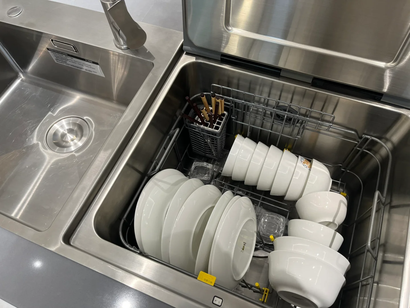 水槽式洗碗机占用的空间比较小,但同时也意味着这种洗碗机的容量会更小,一般就只能够放下6~8套餐具而已。
