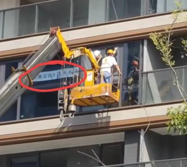 3月15日早晨,杭州一新交付小区内,物业公司开来大吊车,由工人拆除了两户业主违规私自封包的阳台。