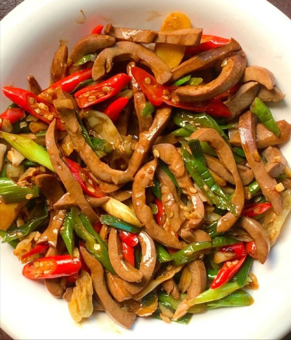 脆脆的猪肠和腰花,香香软软的猪肝,我男朋友吃了一口直呼过瘾!轻松干掉两碗大米饭,我们时不时就会做上一餐来吃,干锅猪腰子的制作过程: