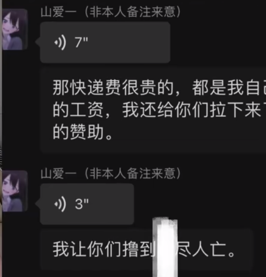 最让人大跌眼镜的是,这些福利赞助虽然是上爱一免费拉来的,但发货她还得自己贴钱来出快递费,这一来二去等于是亏钱请粉丝来玩青春服了,属实夸张。