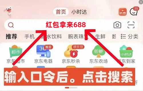 打开京东 APP 后,直接在顶部搜索框输入【红包拿来 688】,点 “搜索” 就能跳转到红包领取页,每天可领 3 次,最高 11111 元。第一次领完后,记得点搜索结果右上角的 “收藏”,第二天直接从 “我的 - 收藏” 进入,不用再输口令,3 秒搞定。