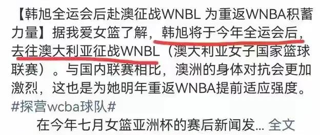 韩旭加盟澳洲联赛,赛期可能会维持四个月的时间,虽然相比较WNBA赛期较短,但是可以为韩旭提供以赛代练的黄金期窗口。对韩旭重返WNBA奠定坚实的前奏。