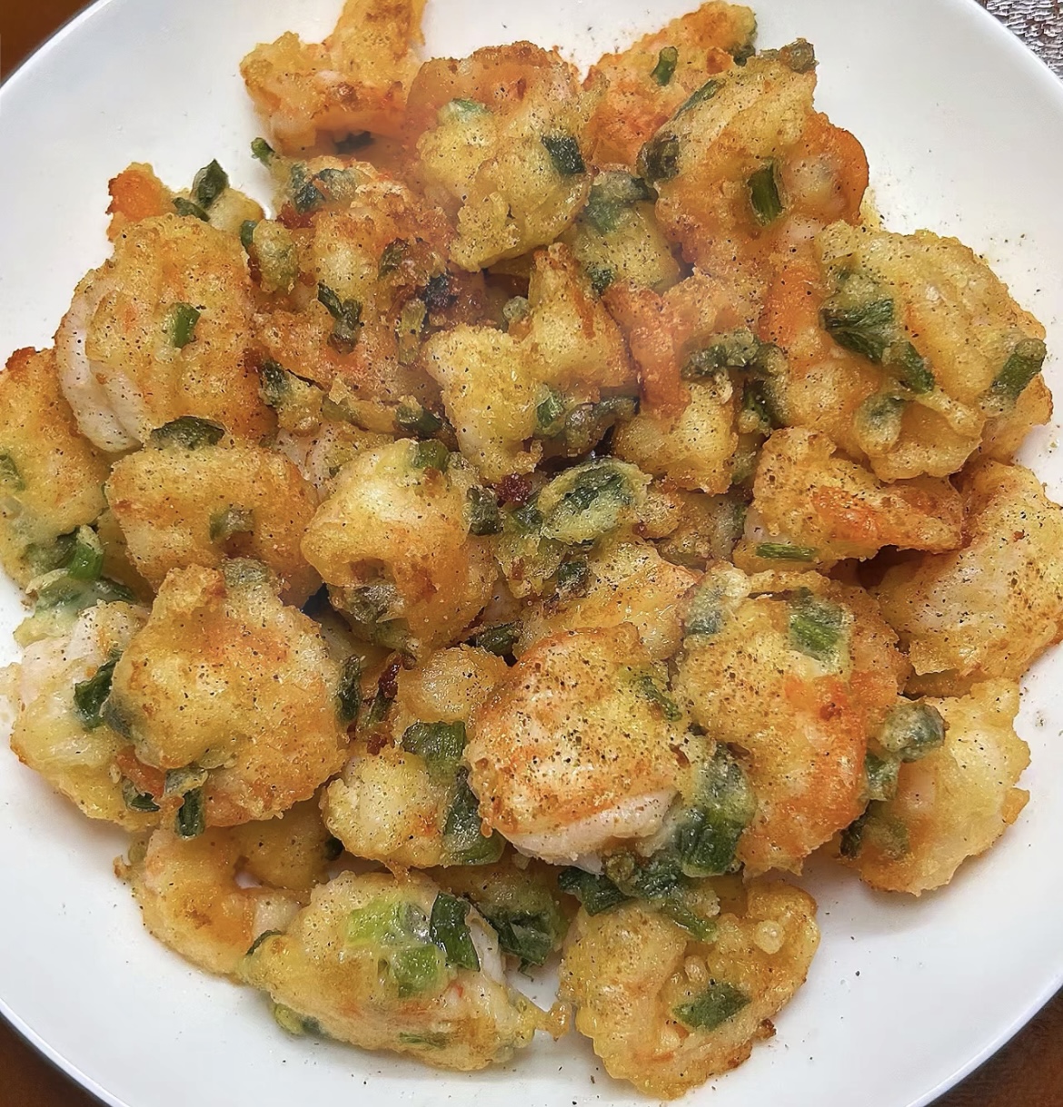 金黄酥脆!家常葱香椒盐虾仁,一口一个停不下来
