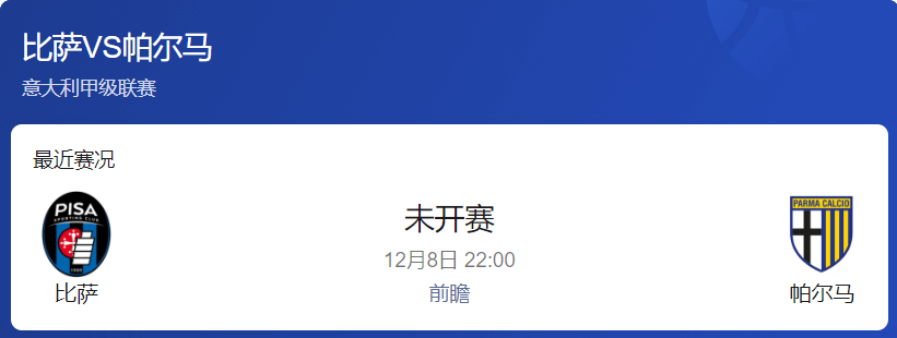 二、赛事一:比萨 vs 帕尔马(意甲)