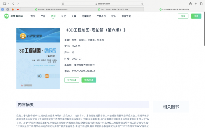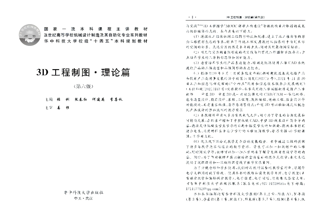 其中,张俐、阮春红等多位教授编写的《3D工程图学•理论篇》教材目录中明确了国产中望软件的相关内容: