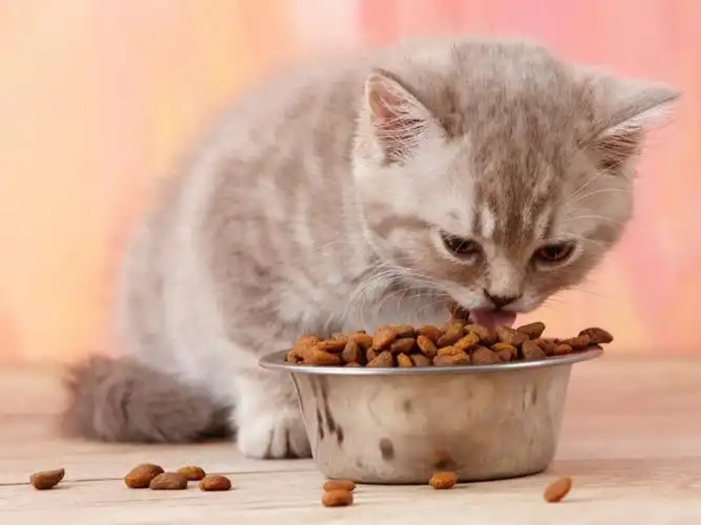 此时幼猫的肠胃功能和牙齿已基本发育完善,能正式吃干猫粮了。