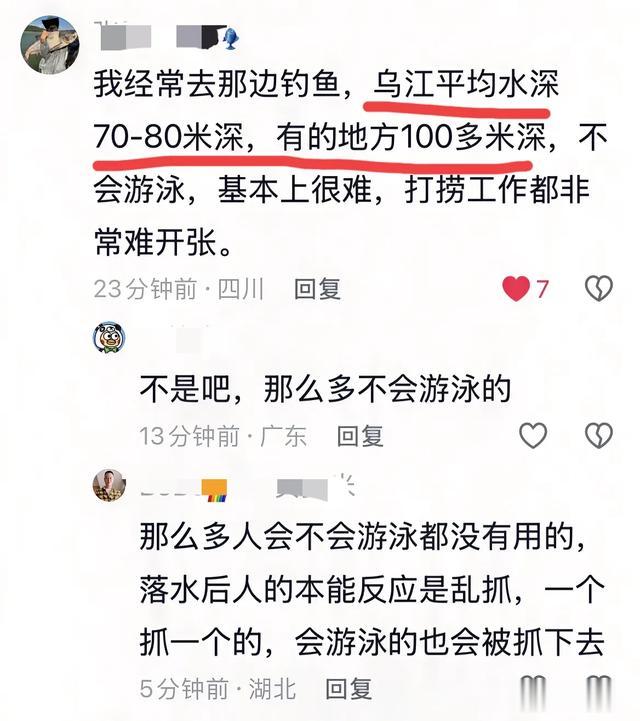 六个半小时,搜救打捞出63人,可见营救之艰难,而是,据经常去乌江钓鱼的人说,那里的水普遍都有七八十米深,走得更深一点的一百多米。