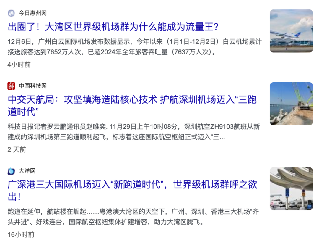 从2024年的数据看,广州白云国际机场的旅客吞吐量是7637万人次,深圳宝安国际机场6148万人次,香港国际机场5310万人次。
