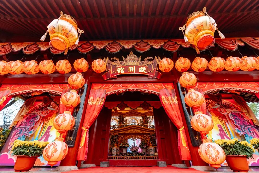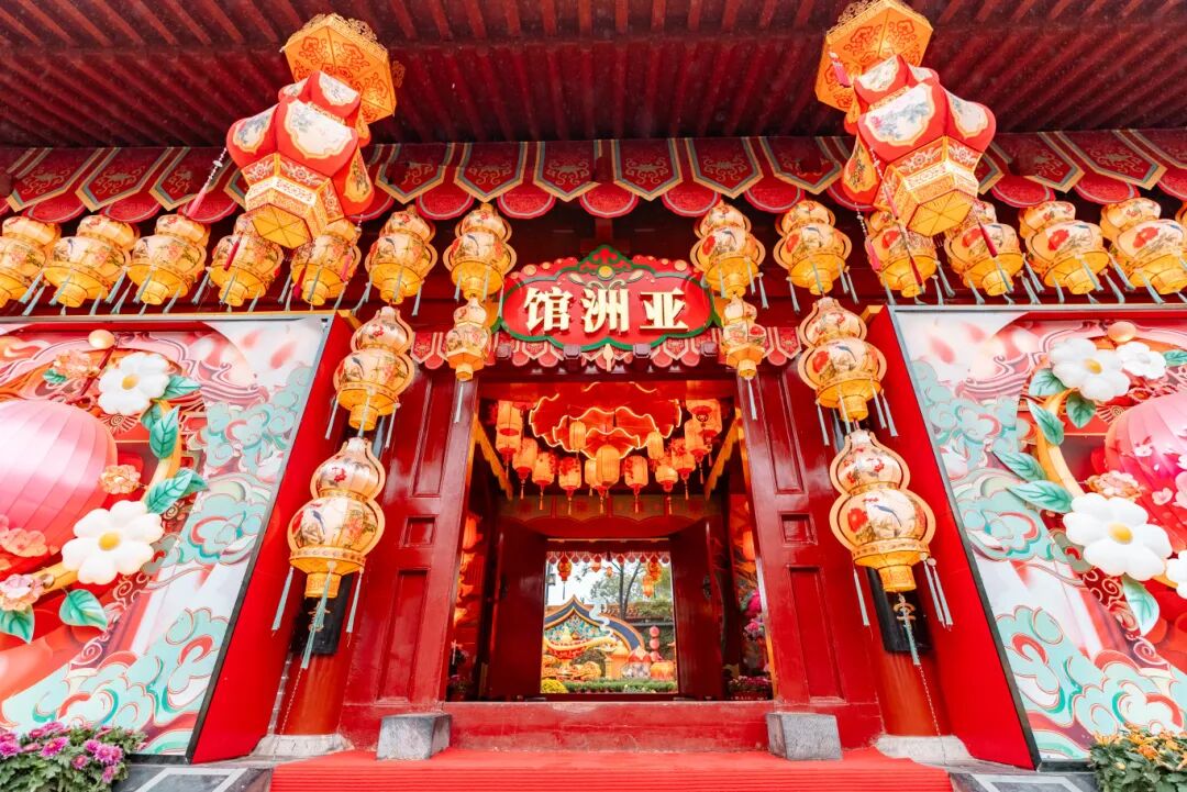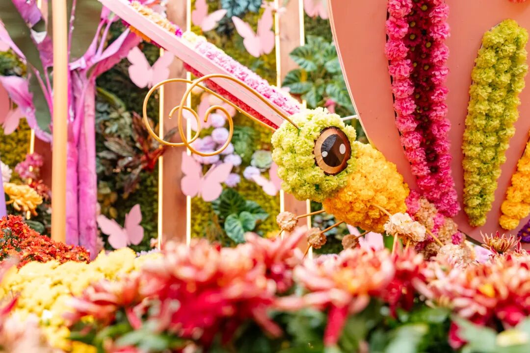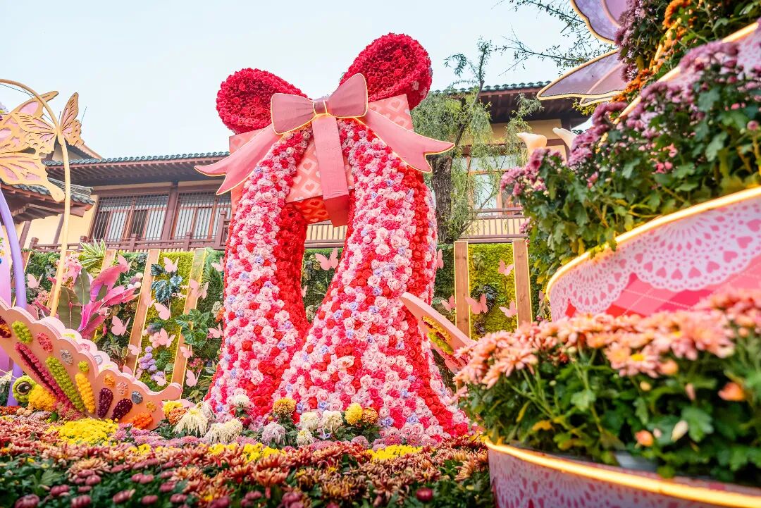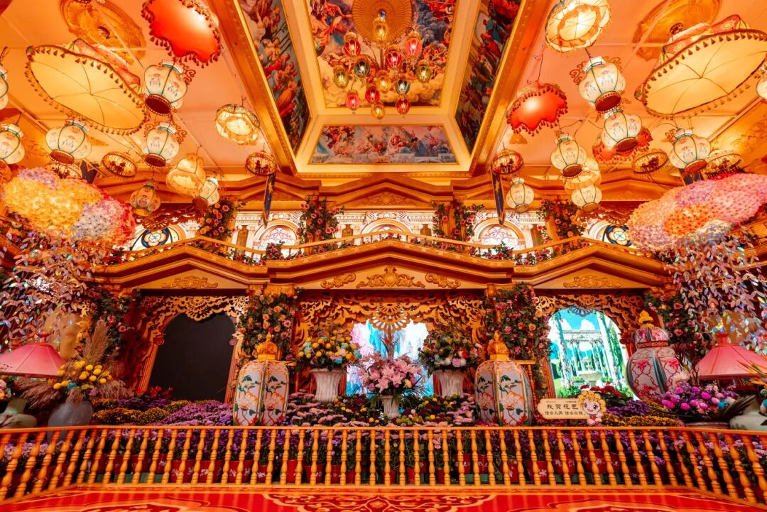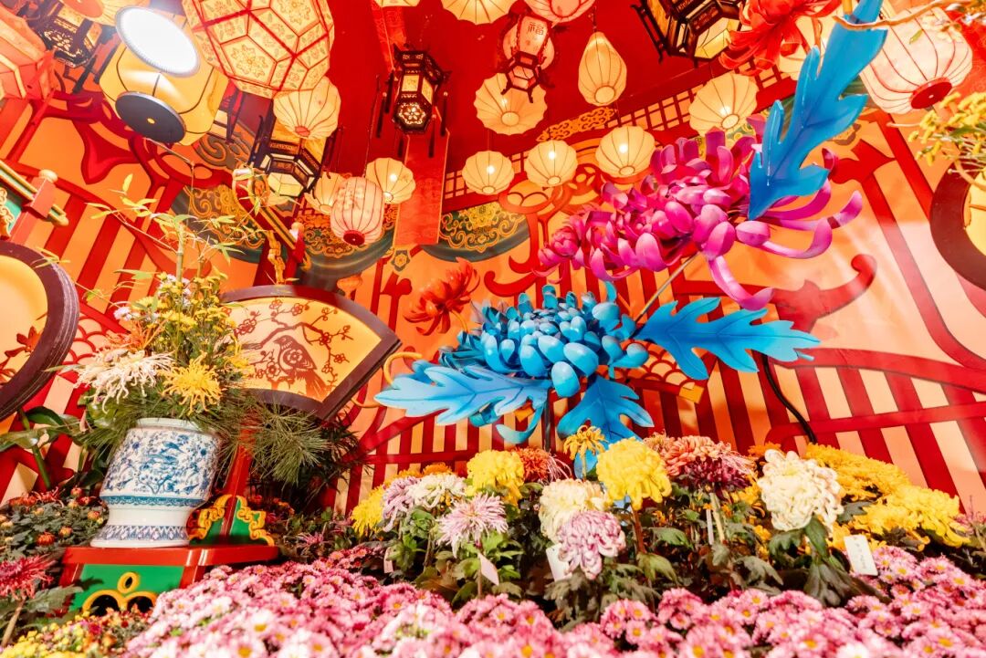 东南亚馆将泰国传统建筑与菊花巧妙结合,搭配泰国传统花卉布置风格和丝绸花布等装饰,营造出浓郁的泰国风味氛围,仿佛让人踏上了一片充满异域风情的热带土地。