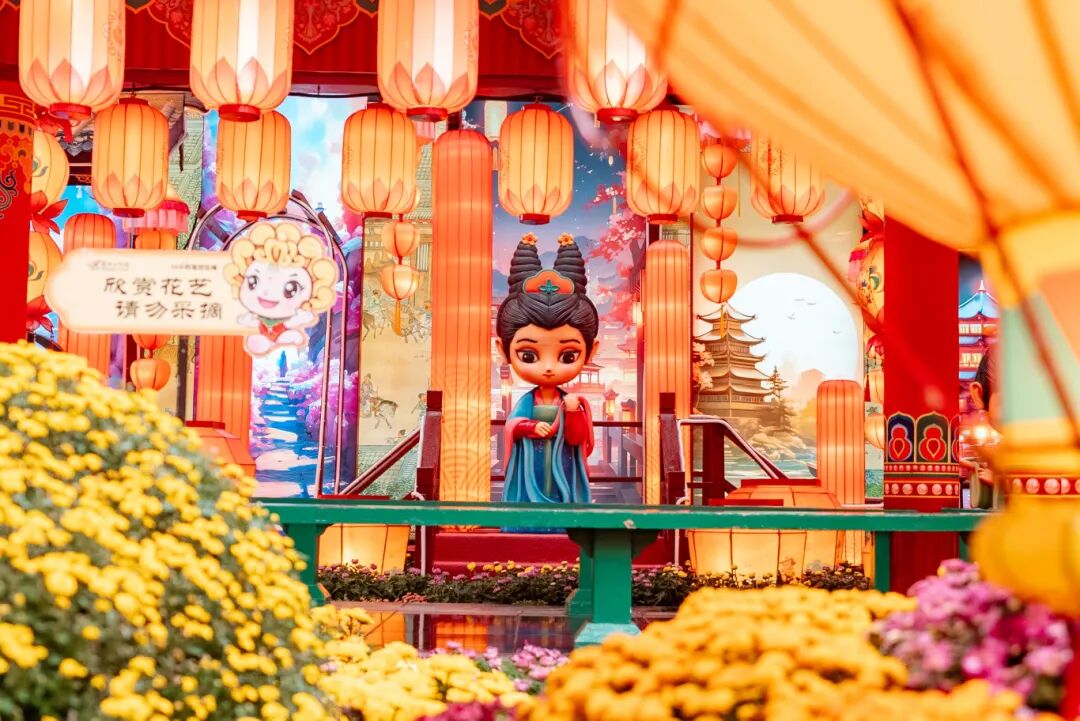清明上河园第十四届国际菊花展以“宋韵宋风,盛世华章”为主题,汇聚了来自全球各地的菊花精品与多元文化创意。设计师们结合不同文化主题,匠心独运地进行设计与布展,精心搭建起兼具历史厚重感与艺术美感的文化背景,让菊花的奇美俊秀与瑰丽多姿在多种场景中得以集中展现,仿佛一场跨越时空、地区的文化对话。