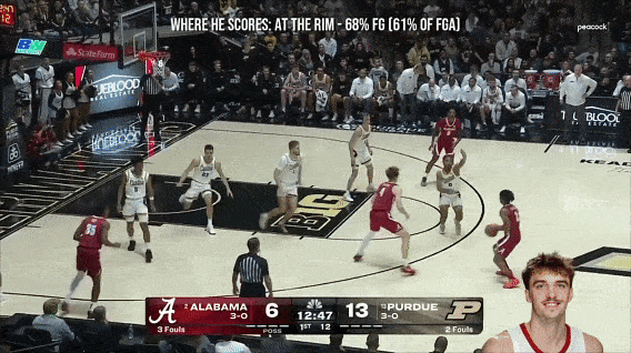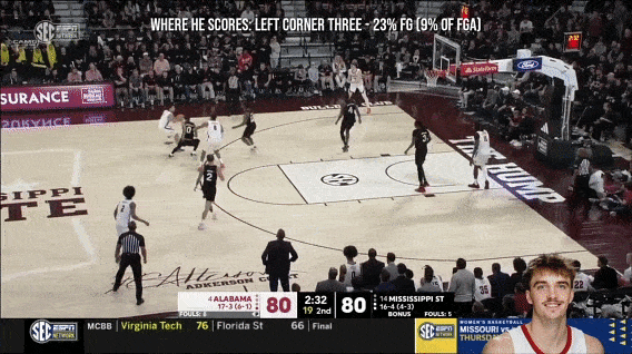 大四赛季他还能投些接球三分,但是大五赛季,三分球命中率非常惨淡。
