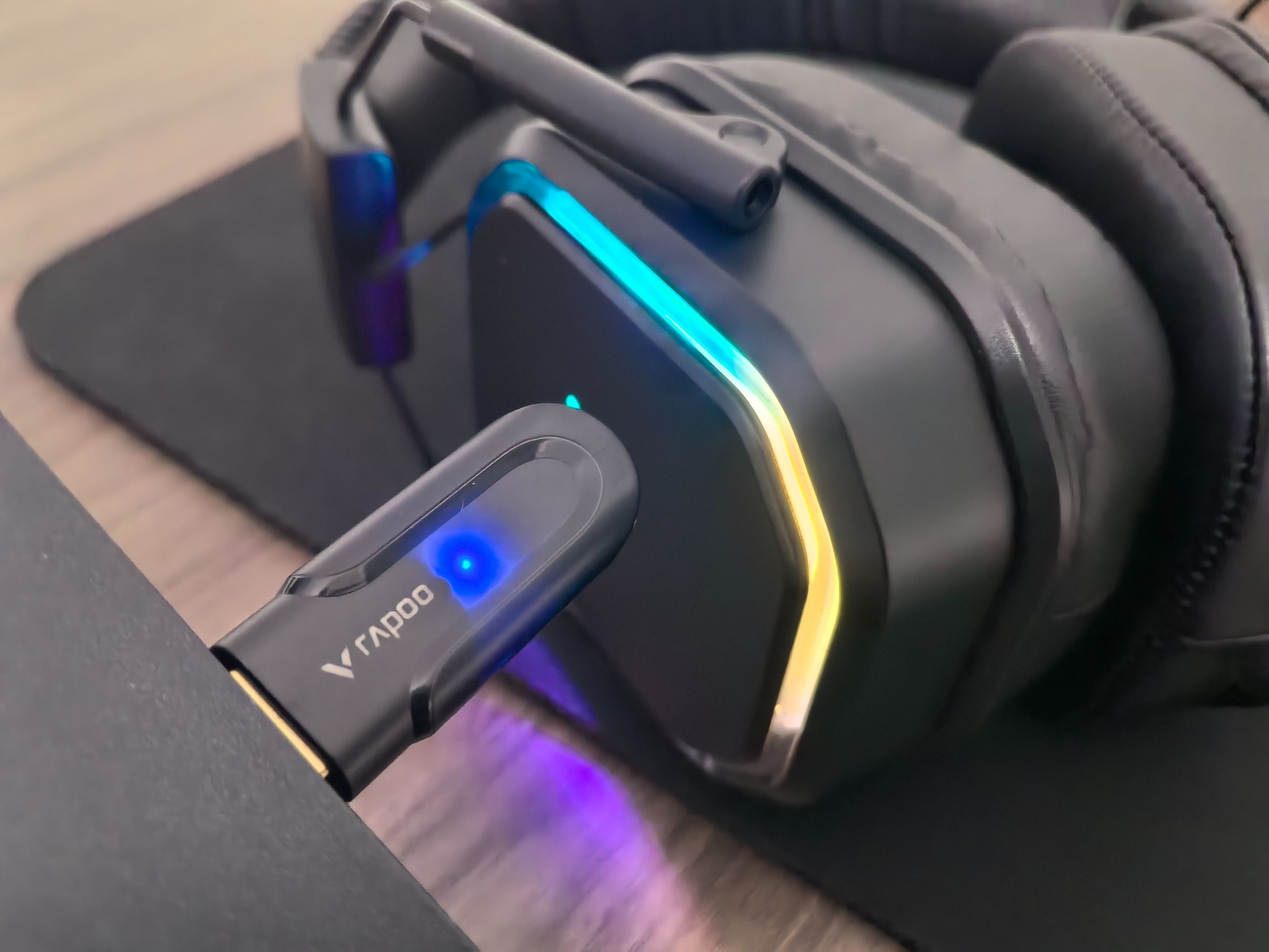 文章一开头就提到,雷柏 VH850是一部支持三模连接方式的耳机:2.4G无线、蓝牙及有线。蓝牙连接不必多说,只要设备支持蓝牙即可直接连接。对于不支持蓝色的设备,则可以搭配2.4G无线接收器享受高速无线连接。