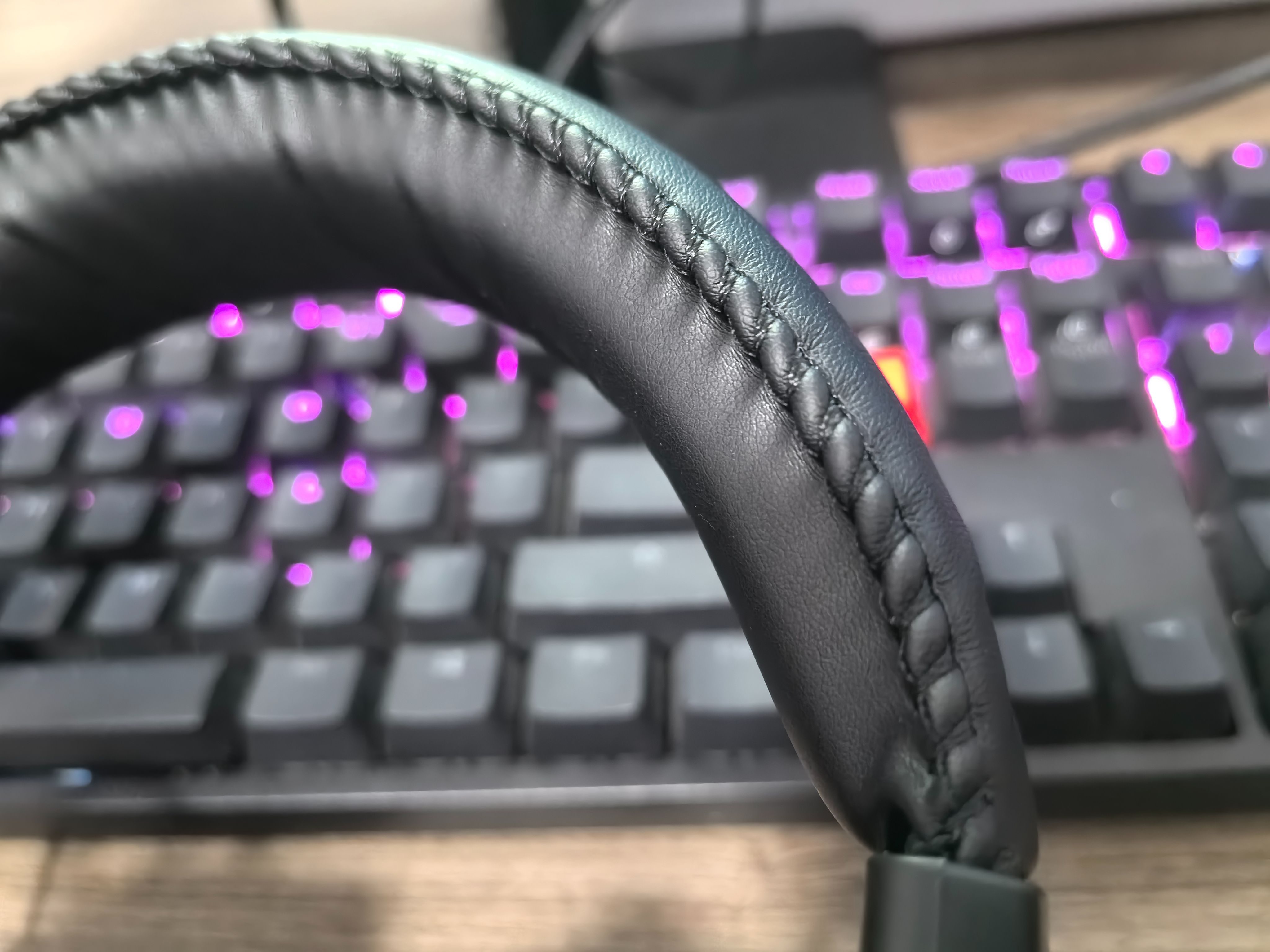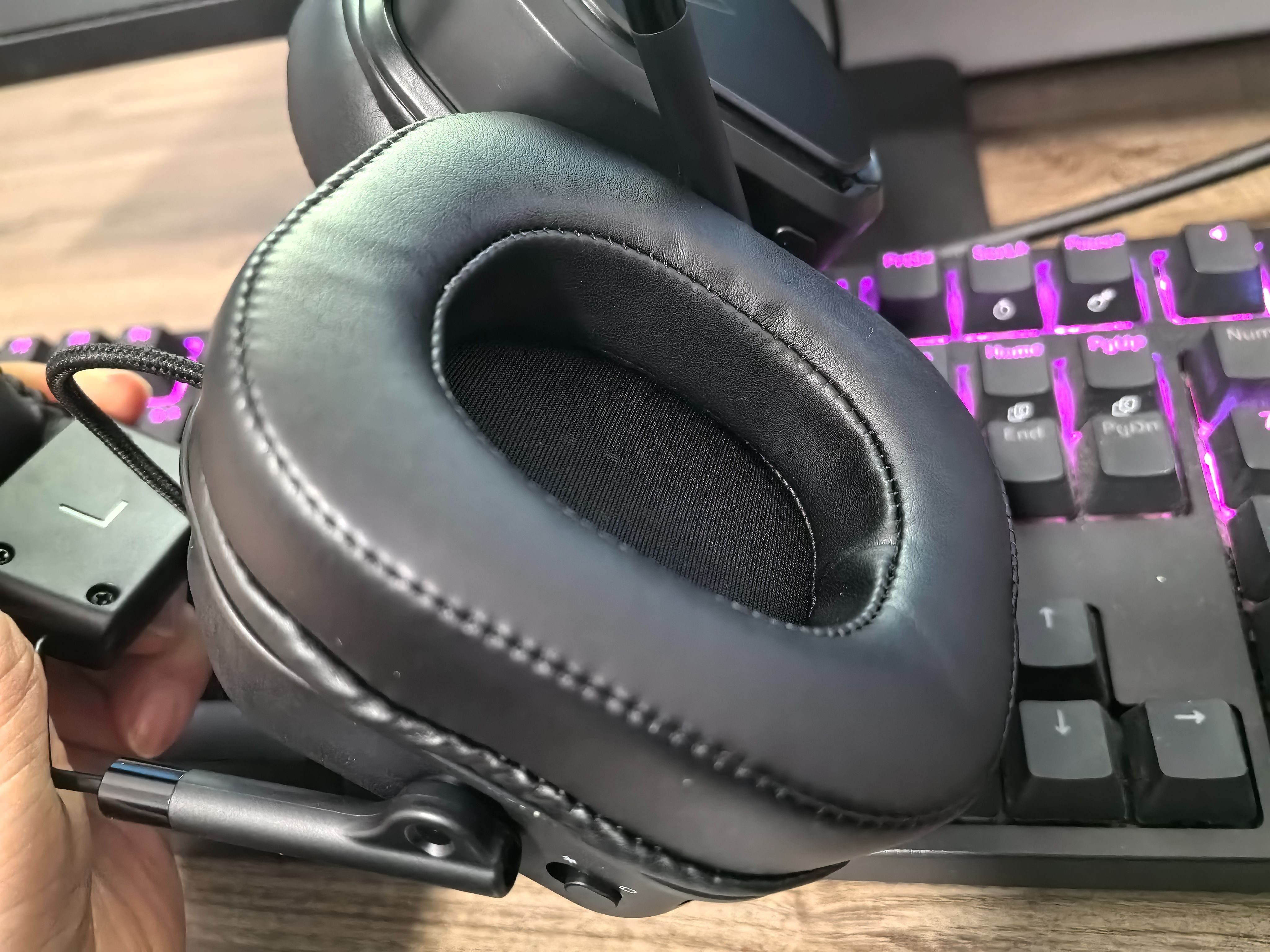 雷柏 VH850的外部采用蛋白皮亲肤材质,柔软、细腻,透气性好。即使是象雷柏 VH850这种全包式的耳罩设计,长时间佩戴,耳朵也不会觉得闷热,让你始终感受干爽舒适。