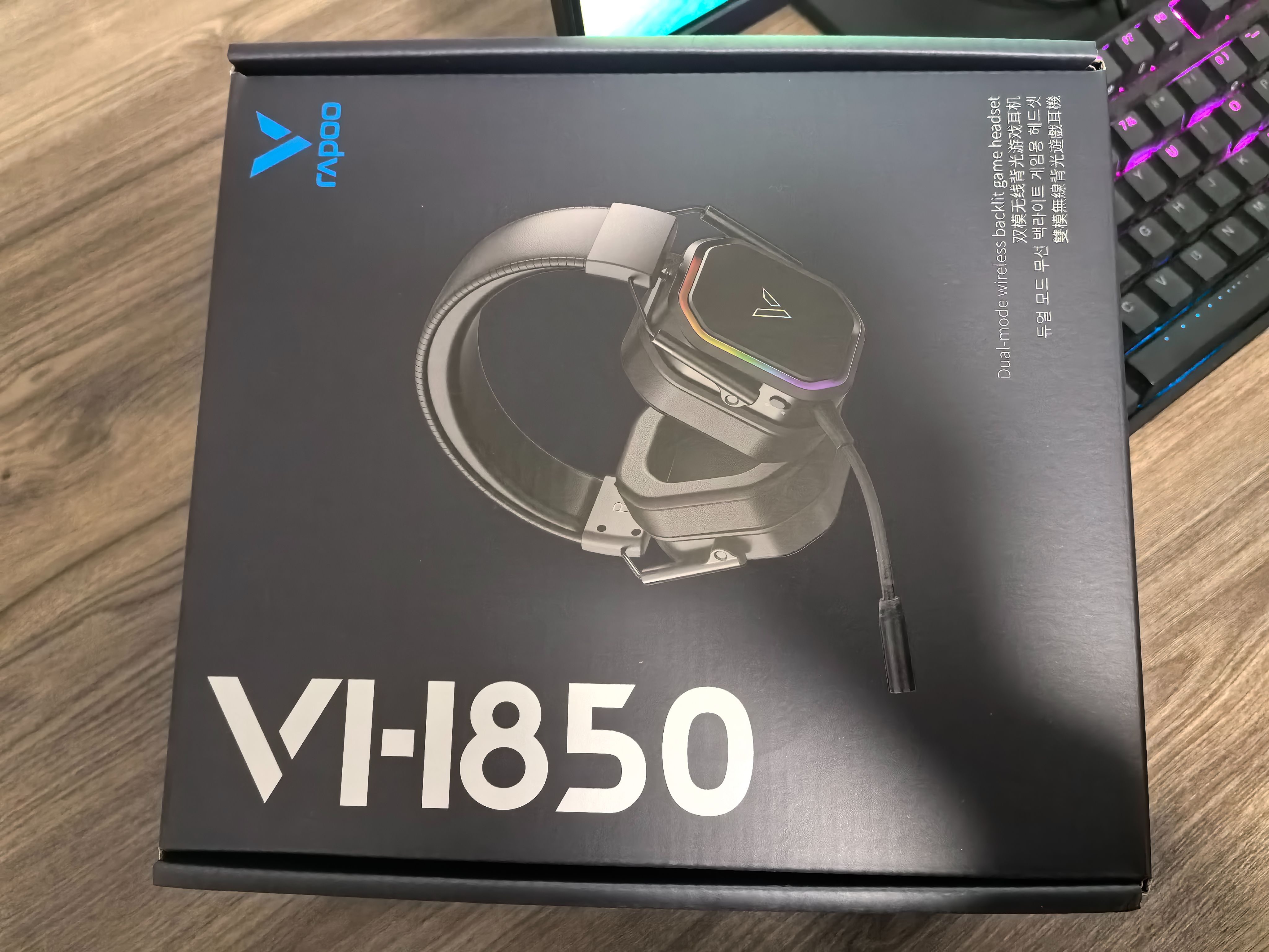 以前只用过雷柏的鼠标,觉得他家的包装盒挺大,今天看到VH850的包装盒,知道了“没有最大只有更大”,这个体积感觉跟我的路由器差不多了。