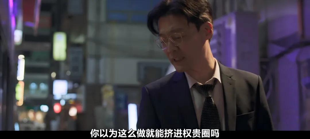 先说朱智勋,他饰演的方泰燮是个为了向上爬不择手段的狠角色——前一秒还在低眉顺眼地陪笑,转身望向猎物时笑意已不达眼底。