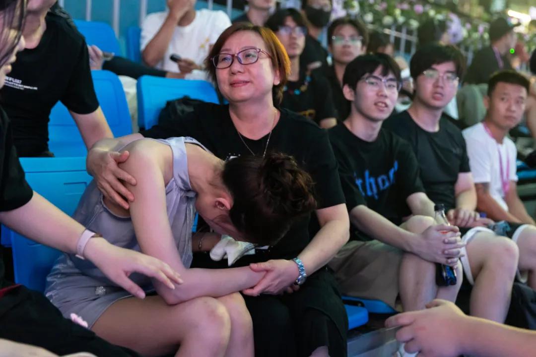 当时我站在更高的观众席,看到那个在镜头前总是很淡定的小羊,开始拖着椅子前后摇晃,一会儿用手紧紧攥着纸巾,一会儿用手抚着胸口呼气——似乎在总决赛结束的那一刻,小羊这些天为了全神贯注打比赛而压制的各种情绪,如洪水决堤般涌了出来。