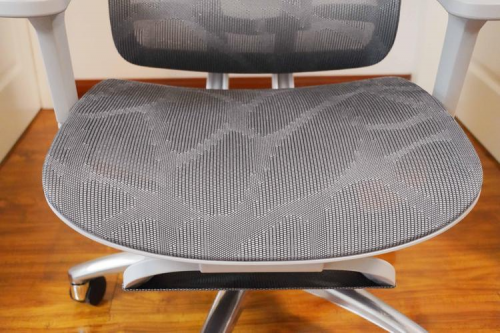 采用意大利进口植绒网布,密集网面兼具柔软触感与透气支撑,光腿坐不勒肉。第二代自适应底盘依体重自动调节后仰阻力,5cm可调坐深适配不同腿长,SGS认证四级气压杆搭配尼龙五星脚稳固耐用,静音轮滑动顺滑不伤地板。安装简便但整椅偏重,椅背不可单独升降,对165cm以下人群适配欠佳;部分反馈后仰锁定杆偶有卡滞,需定期润滑。网布支撑对大体重友好,但扶手调节阻尼偏大。
