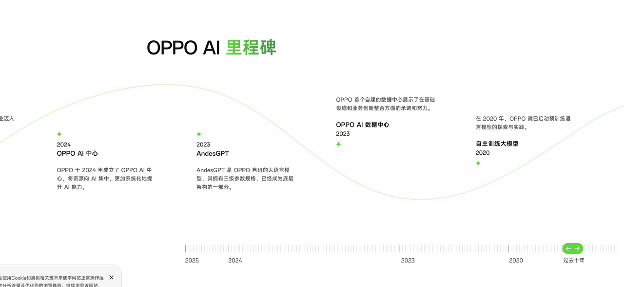 2023年,OPPO AI数据中心建立,同年OPPO推出AndesGPT,作为OPPO自研的大模型语言,拥有三级参数规格,成为底层架构的一部分;