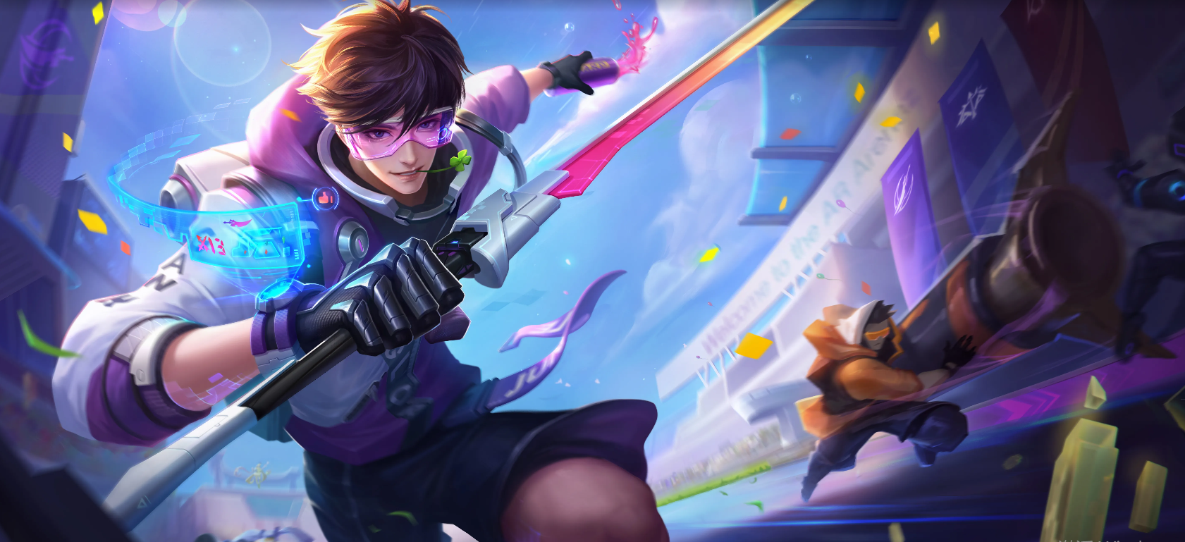 这款皮肤彻底打破了李白传统的古风形象,以街霸风格的造型亮相,让人眼前一亮。李白化身为街头快拳英雄,释放大招时动作迅捷无比,打打停停间飘逸如飞。如果你厌倦了传统的古风英雄,那么这款皮肤绝对会给你带来全新的游戏体验。现在只需288点券,你就能拥有这个帅气满分的疾风快打,还不快来一试身手?