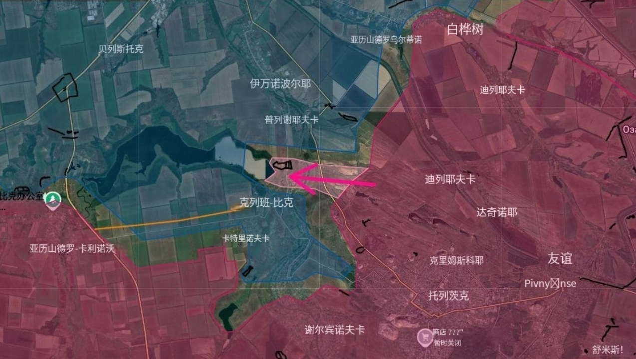 托列茨克方向,俄罗斯方面宣称在克列班-比克取得突破并已抵达了水库东岸,但遭到了乌克兰总统办公室顾问波多利亚克的否认,称其为“薛定谔的突破”。