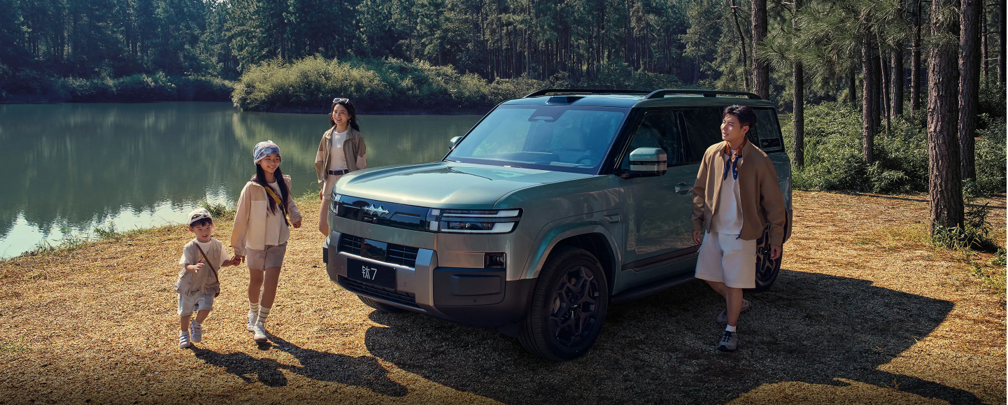 钛7是方程豹首款承载式混动方盒子,定位为科技大空间SUV,共推出四款车型,售价区间17.98万—21.98万元。其特点为“够长、够高、够大”。外观采用钛能前脸与三段式车身设计,近5米车长搭配7种配色及双拼色选项,气场强大。钛7车长近5米,宽近2米,拥有70.9%超高“得房率”。乘员舱有效车长超过3.3米,净高度达到近1.4米。“即便是身高1.9米的男士,在车内也能够挺直腰背,孩童更是可直立穿行。