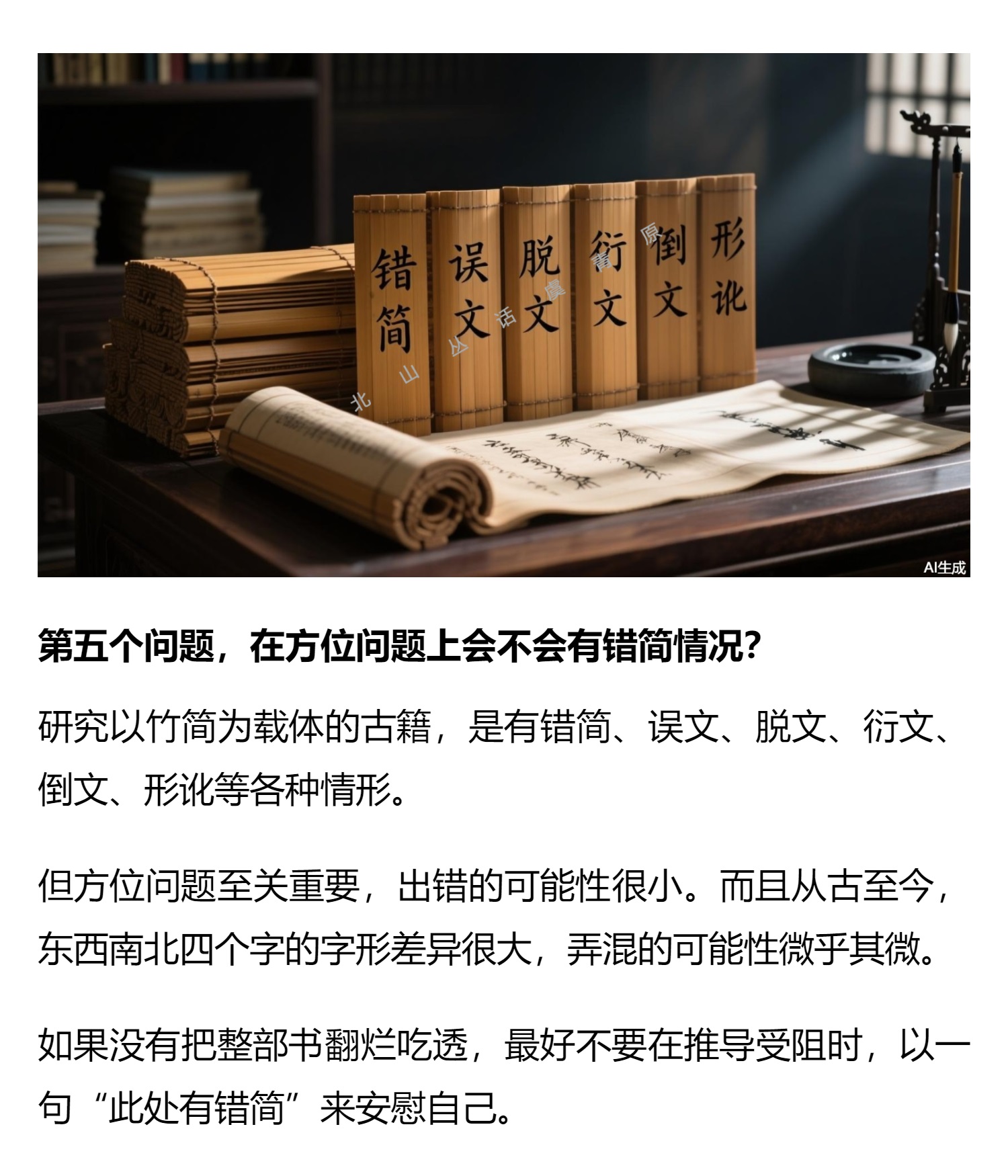 分析《山海经》山系的地理位置,需要考虑五个问题:一部远古书籍如何做到传递几千年;古人在野外怎么判断方位;如何确定第一座山系的位置;下一座山系的方位该如何确定;在方位问题上会不会有错简情况。