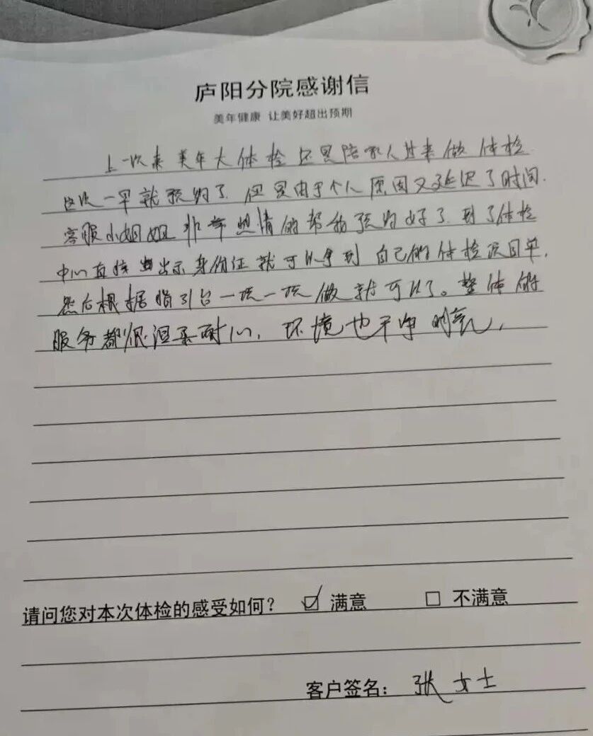 这些来自体检客户的真实心声,记录着体检过程中的温暖相遇,也映照出医者仁心的细腻光芒。今天,让我们一同展开这些承载信任的纸页,聆听体检背后的暖心故事。