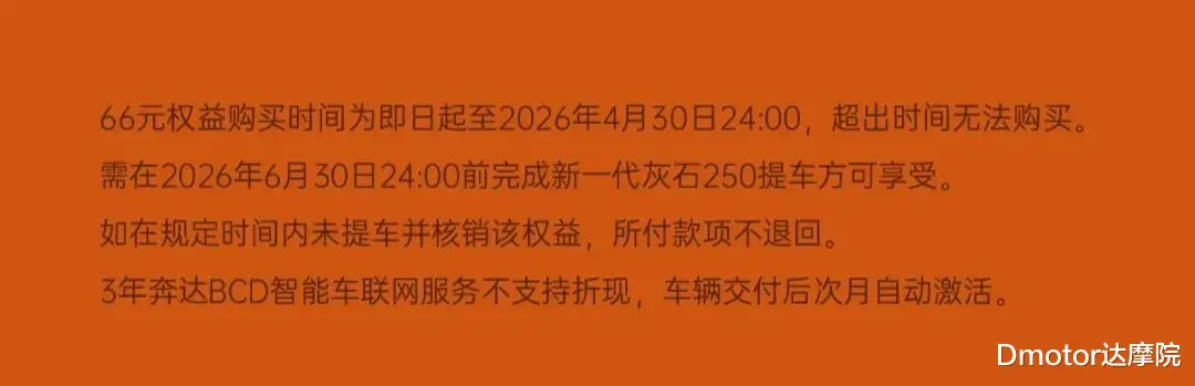 但需要注意的是,这套权益有明确时间窗口和提车限制!