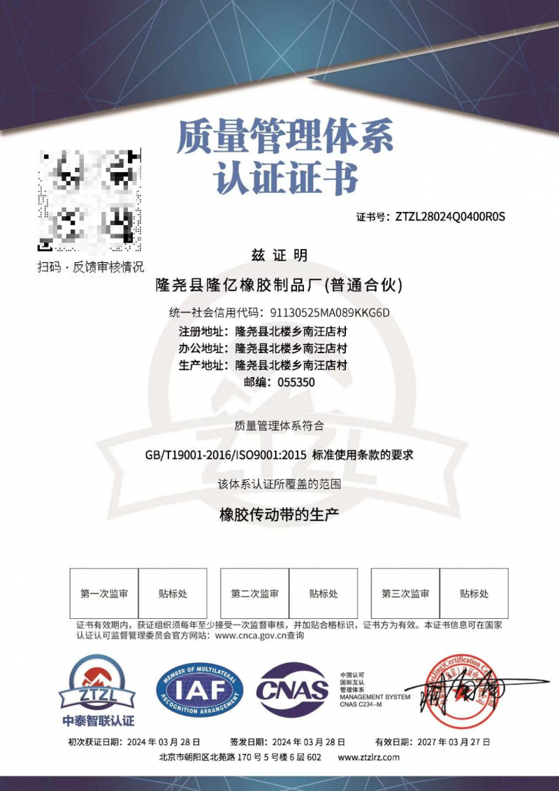 我们已通过 ISO 9001 质量管理体系认证(同时对照ISO 14001环境管理实践要求执行),以体系化文件与过程证据确保一致性与可追溯。