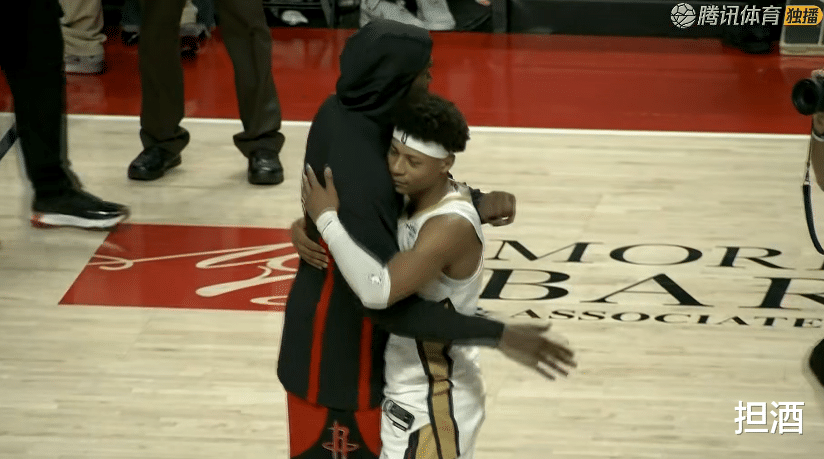 比赛结束,伊森很兴奋,第一时间跑进场内,一把抱住鹈鹕球员费尔斯,和其拥抱致意,杜兰特等也走入场内,和对方球员逐一拥抱,虽然场上有冲突,但赛后球员之间还是很友好的。