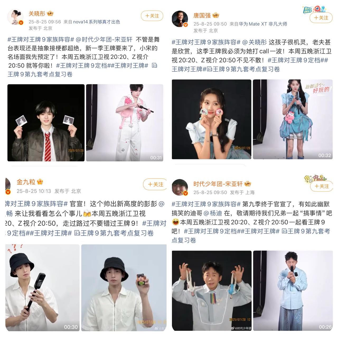 王牌真的有把观众放在心上,联合微博发起了“王牌9互宣搭子真听网友劝”官宣特别活动,把王牌家族的官宣权力交到观众手中,主打一个相互奔赴爱意满满!王牌家族就像一个大家庭,大家毫无压力的开玩笑,互动之间也自然流露着属于家人的温暖与松弛,每每同框便已是笑点与温情齐飞。王牌家族之间也纷纷互晒谷子与成员的合照,互相官宣打call玩梗。果然还得是王牌,有的就是一个不按套路出牌的惊喜碰撞。