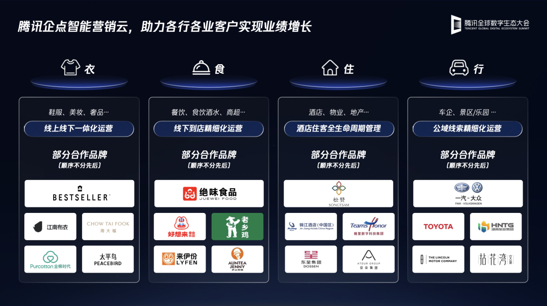 比如太平鸟,一个数据是,基于腾讯企点营销云MAGIC Agent的标准化产品,在今年的太平鸟秋装活动中,整个活动的点击率提升90%,转化率提升20%,营销金额同比上涨了超过20%。