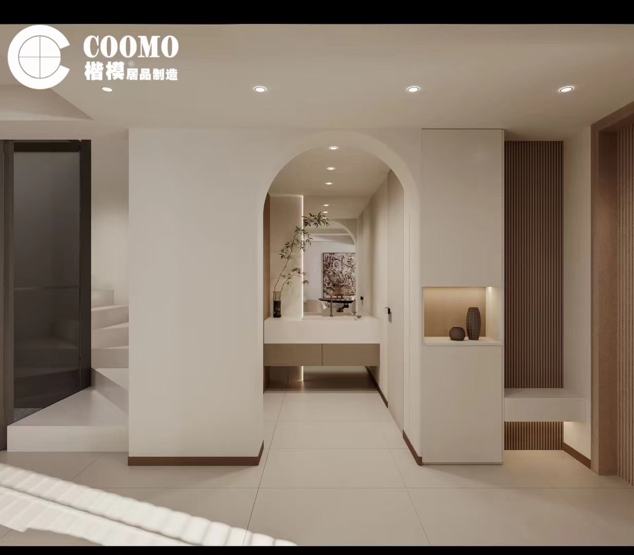 COOMO高级定制认为,舒适的极简空间,不仅契合大众追求和谐和简单,而且遵循光影与几何线条的严格定义,以纯粹和深度定义统一的环境,并试图让空间的具有优雅范儿。