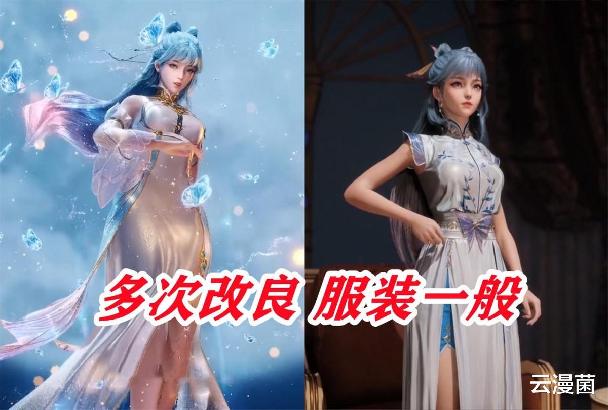 王冬正式变成女性之后,必然要有一套属于自己的女孩衣服,并且长相也要进行大量修改。王冬变成王冬儿之后,其女性气质得到极致提升,除了一头粉蓝色长发和娇小的脸庞之外,这一身素白色的旗袍毫无疑问是她女性特征的关键体现。但这身衣服当时却并不被看好,很多人觉得太过朴素,和七怪其他人比起来,女主同时期的服装的确有些过于简单拉胯了。如果非要说好,可能就是国风元素还不错。