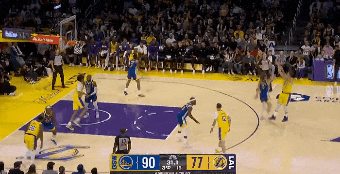 拉拉维亚补篮得手连拿5分,湖人揭幕战三节落后勇士11分
