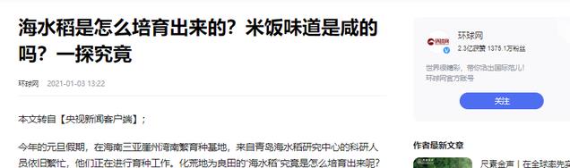 环球网2021-01-03——海水稻是怎么培育出来的?米饭味道是咸的吗?一探究竟