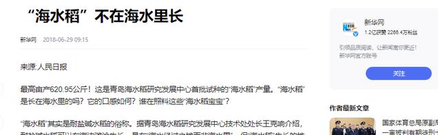 新华网2018-06-29——“海水稻”不在海水里长