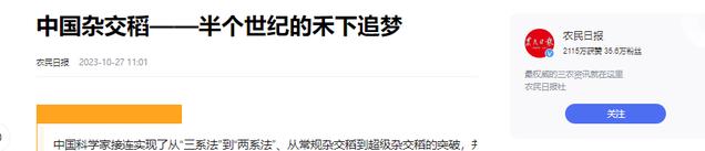 农民日报2023-10-27——中国杂交稻——半个世纪的禾下追梦