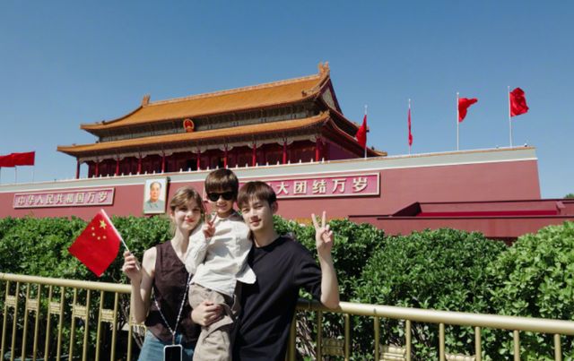在游玩的过程中,董力带着他的妻儿欣赏了天安门的美景,带他们领略了天安门广场的磅礴大气。
