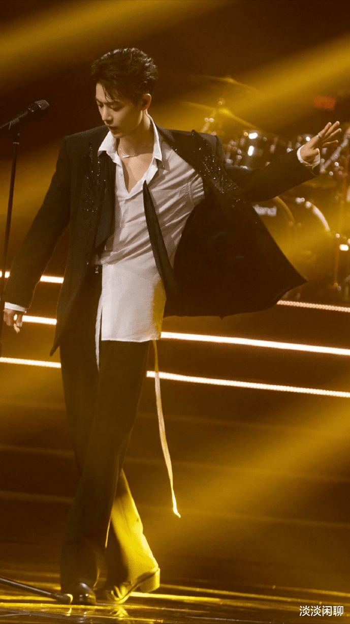 肖战高歌一曲《整晚的音乐》,把晚会热度直接带上巅峰,现场成万人迪厅,嗨翻顶棚。肖战身穿帅气利落的休闲西装,而内搭才是亮点。白衬衫半遮腰,敞开的领口,扯开的领带,衣带身侧甩动,洒脱恣意,性感侧露。单手推掌,让场内瞬间停了呼吸,甩开衣摆让如潮惊呼翻了顶棚。不得不说,肖战的台风酷飒燃爆,霸气控场,一举一动牵动人心,一颦一笑,点燃如火激情。