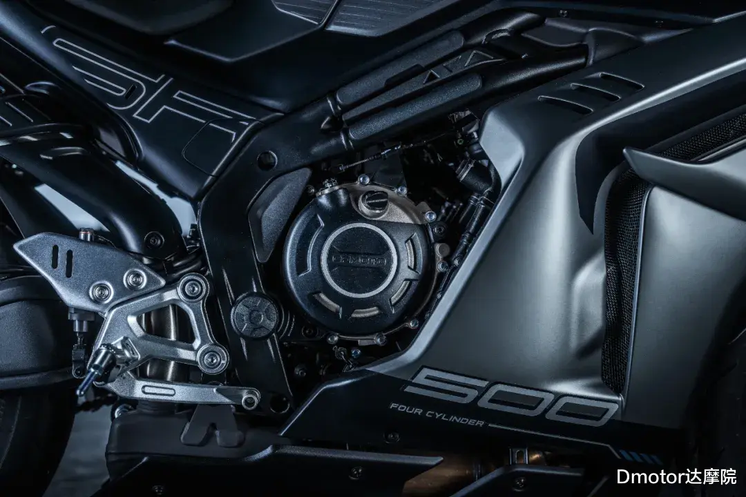 账面动力方面,500SR搭载春风自研直列4缸引擎,峰值功率58kW(冲压后约 61kW),峰值扭矩49N.m。