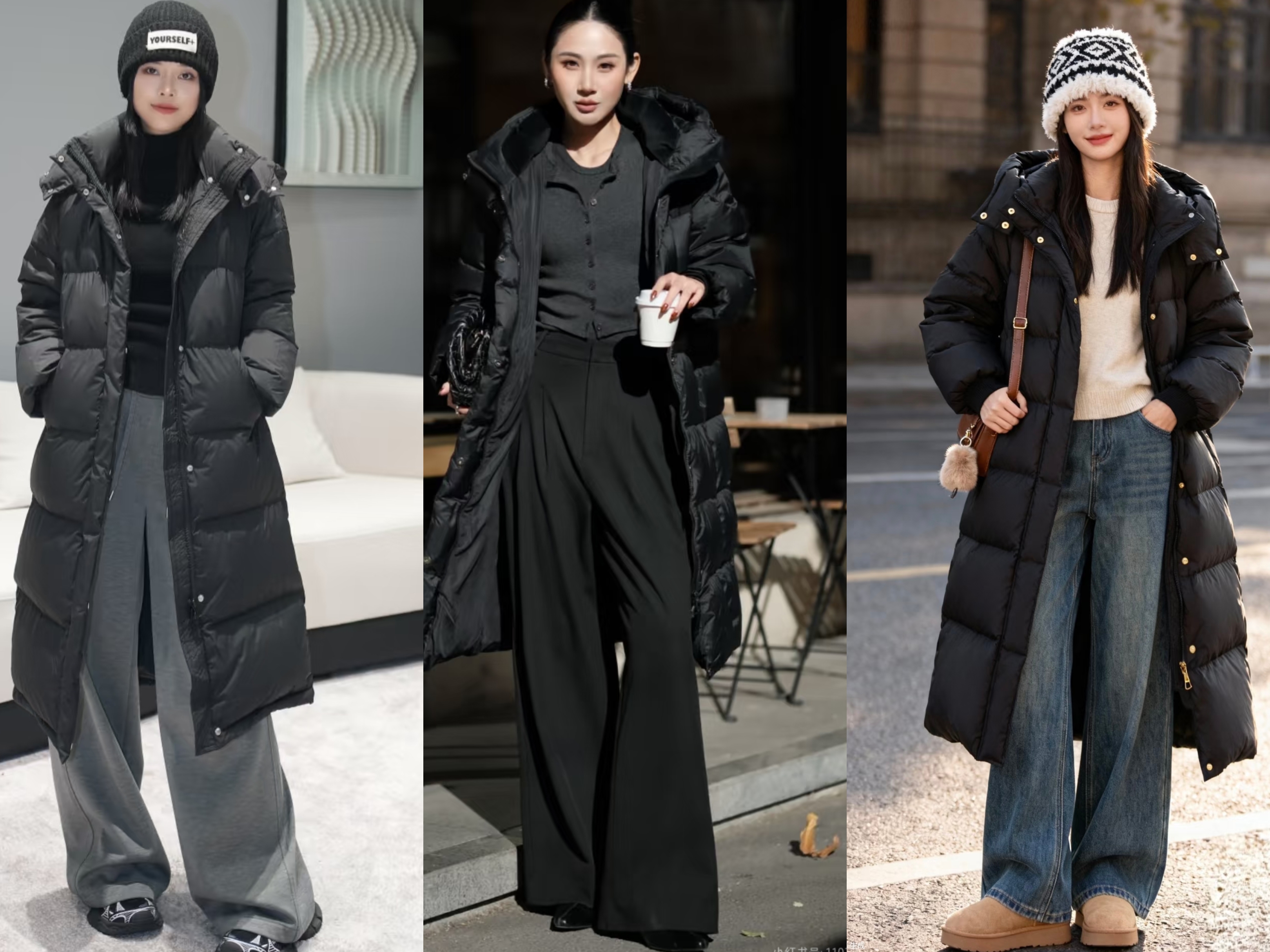 ~款式搭配,避免长羽绒服和宽松下装搭配