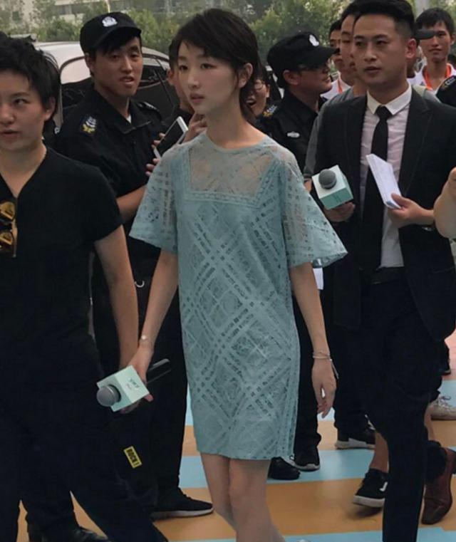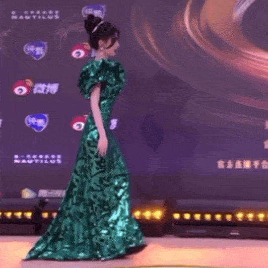 观众们经常可以看到身材娇小可爱的鞠婧祎穿着“扫地裙”慢慢的在红毯上“蠕动”。